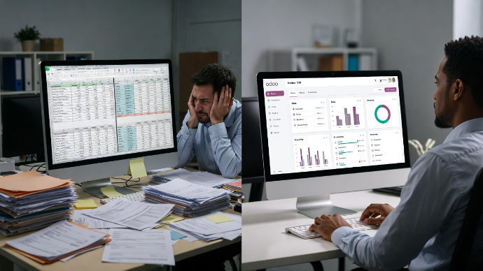 Esta situación no solo incrementa el riesgo de errores, sino que también limita la trazabilidad y el control en tiempo real. Un ERP debe centralizar la información y facilitar la operación diaria, no obligar a complementarla con hojas de cálculo. Si este escenario le resulta familiar, puede ampliar el tema en nuestra entrada de blog: ¿Todavía usa Excel? 7 razones para migrar a Odoo hoy mismo.